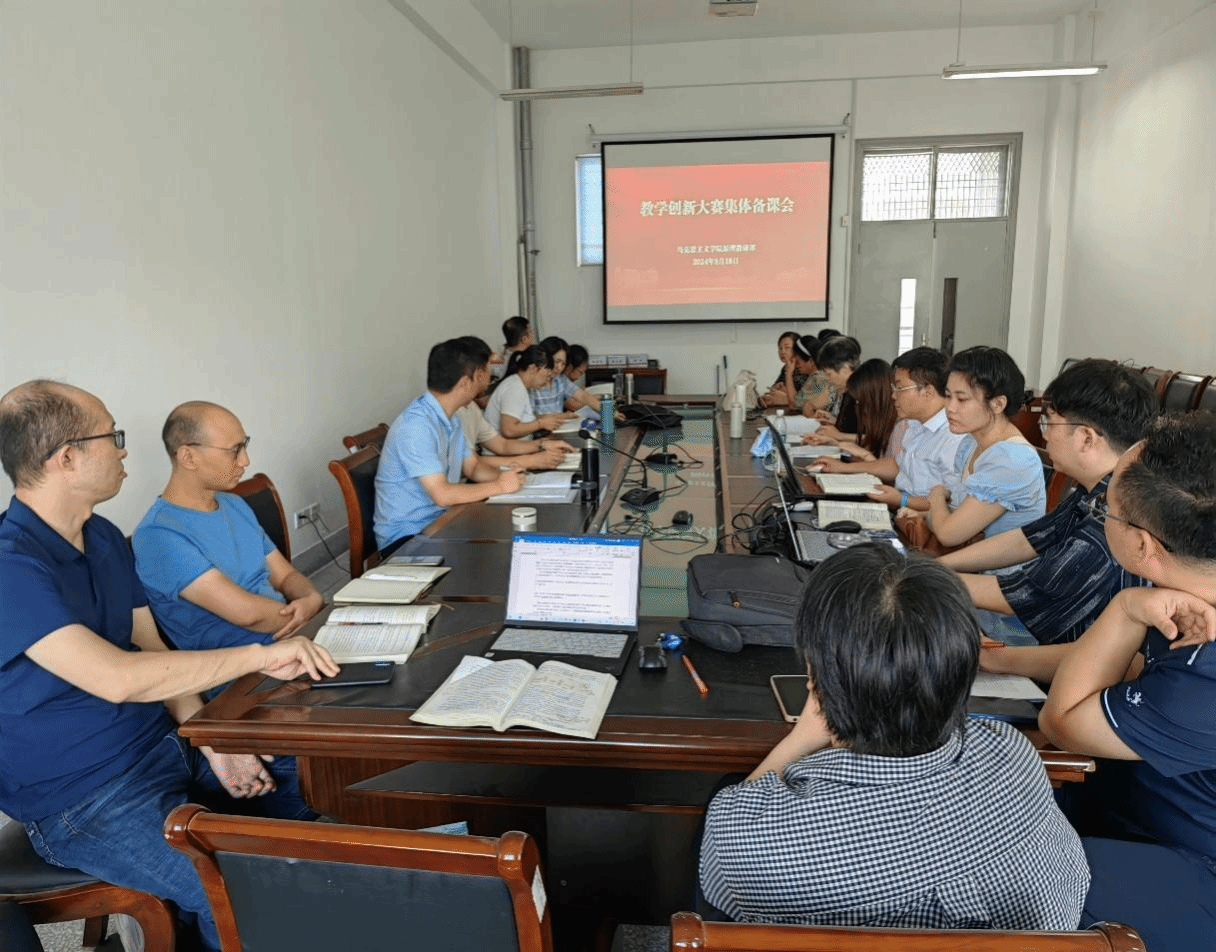 为深入学习贯彻习近平总书记关于学校思政课建设的重要指示和党的二十届三中全会精神,充分学习领会全国教育大会最新精神,迎接教育部本科教育教学审核评估,进一步提升学校思政课教学质量、促进课程内涵式发展,9月18日下午,马克思主义学院组织召开了秋季学期《马克思主义基本原理》课程集体备课会暨教学创新大赛集体备课会。备课会由原理教研部主任翁爱云主持,马克思主义学院副院长马荣、教研部全体教师参加会议。