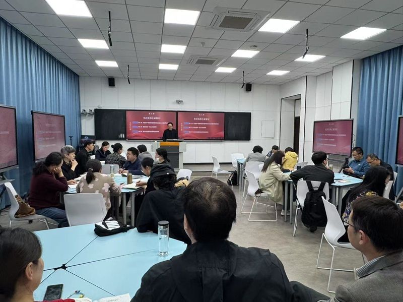 4月16日下午,在希望大道校区博学楼D314智慧教室,马克思主义学院举行“习近平新时代中国特色社会主义思想概论”课集体备课会,围绕用好《“习近平新时代中国特色社会主义思想概论”参考讲义》(以下简称《参考讲义》),推动教材体系向教学体系有效转化这一主题开展备课研讨,校教务处处长余晓红出席备课会,学院党总支书记、常务副院长胡凌霞主持备课会,全体教师参加会议。