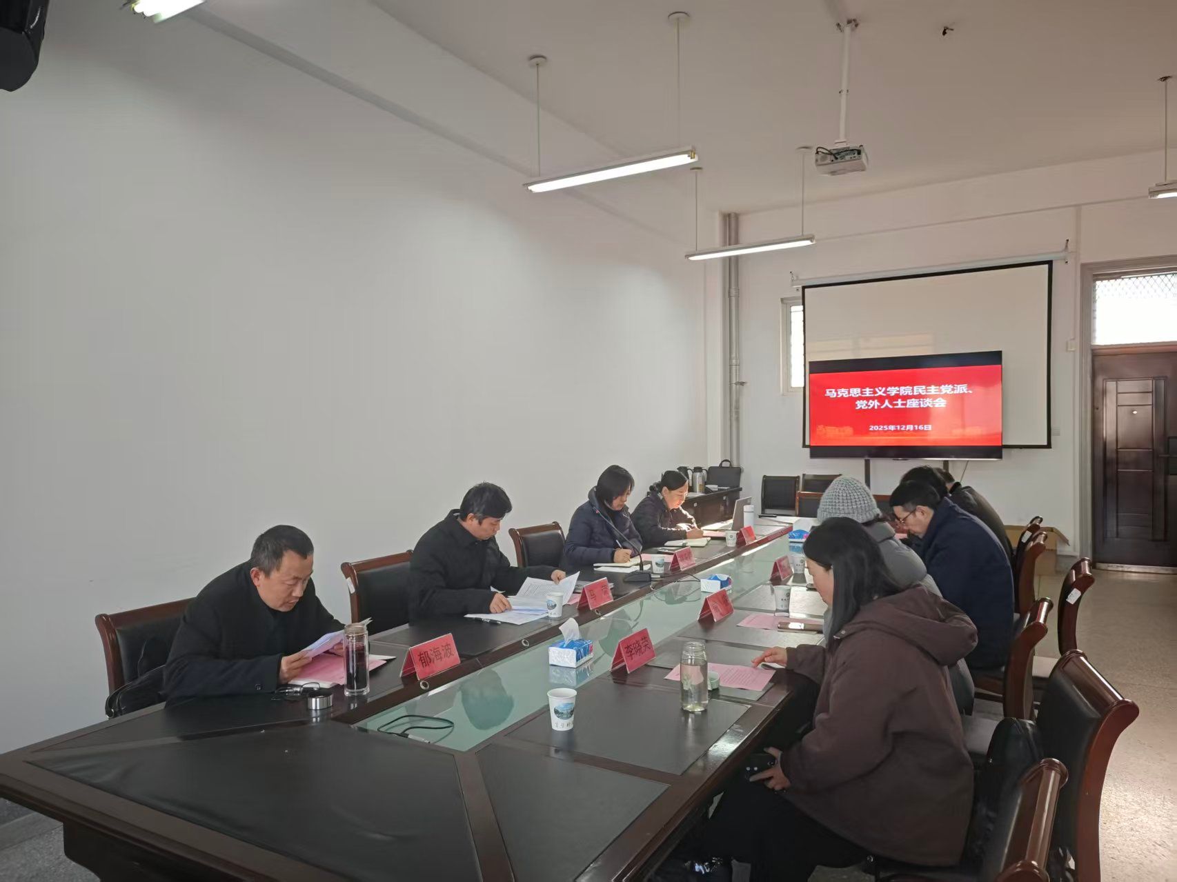 12月9日上午,在南校区博学楼A514召开民主党派、党外人士座谈会。学院副院长马荣主持会议,学院党总支委员会成员、各民主党派、党外人士代表参加会议。