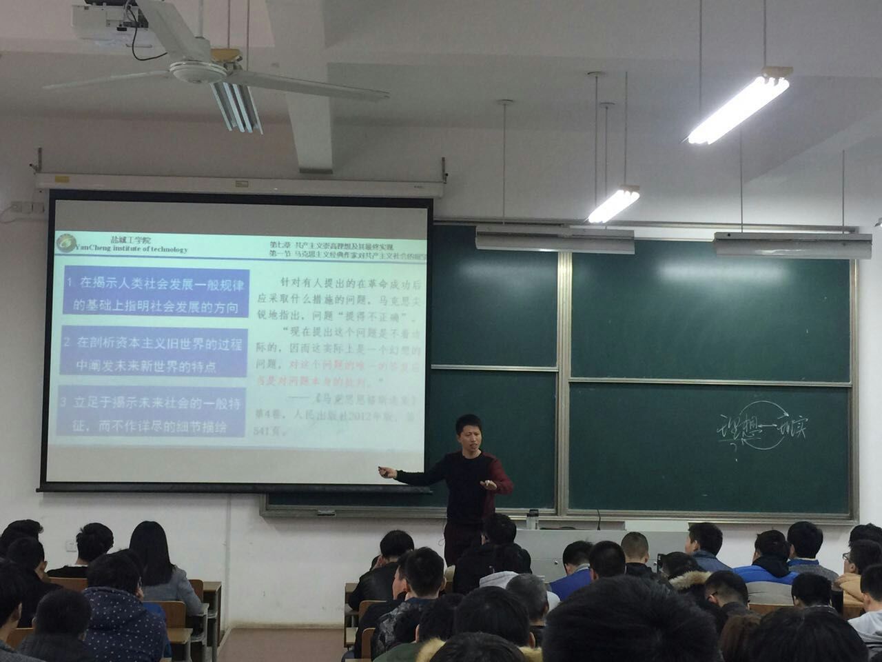 付耀霞老师讲授的是第七章“共产主义崇高理想及其最终实现”的内容。付老师课堂讲授风趣幽默,气氛活跃,引经据典,深入浅出,能够把枯燥的理论内容生动地展现给学生,充分展示了优秀青年教师的风采。