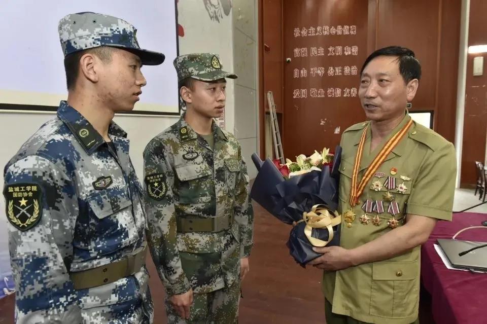 同学们被生动翔实的内容深深吸引,听得津津有味,深切感受到了那段战火硝烟的历史。马协成员、2020级王尊同学代表全体参加活动人员为刘保顺同志献上鲜花,表达了大家对保卫国家的人民解放军的崇敬之情。