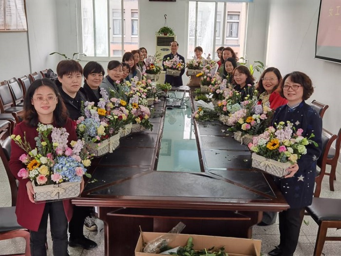 为丰富广大女职工的业余生活,陶冶情操,做热爱生活的魅力女性,马克思主义学院分工会于4月14日组织“幸福像花儿一样”女神节花艺活动。活动邀请花艺老师现场授课,学院16名女教师参与体验。