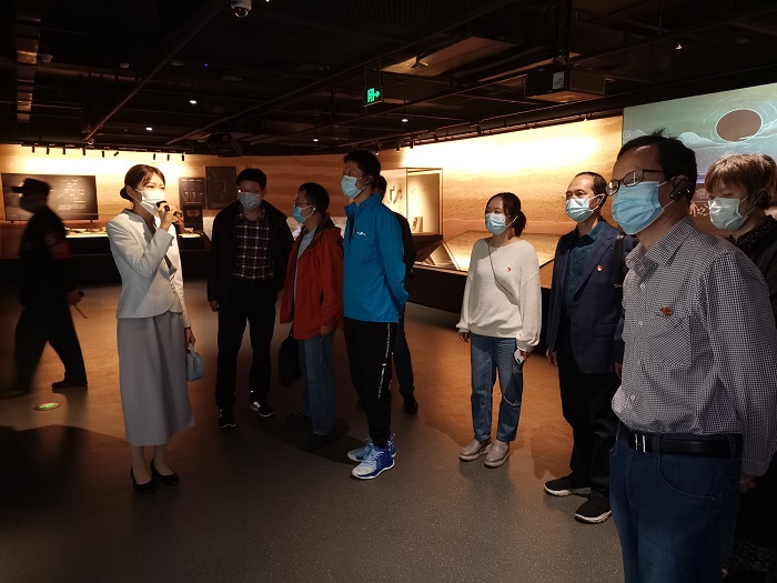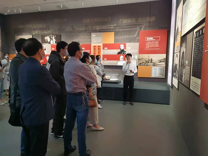 青年教师蔡云晨、李宝、张梦云经过前期精心备课,带领全体教师感受盐城的精神坐标——盐城博物馆。他们围绕盐城博物馆内的珍贵藏品和红色文物给大家介绍了盐阜大地上可歌可泣的的革命历史,讲述了盐阜儿女光辉的革命事迹,从过去、现在和未来三个维度给大家展现了一座历史文化名城——盐城。蔡云晨从星火初燃、华中砥柱、会师盐城、重建军部、敌后文化城5个部分介绍了盐城的新四军文化。李宝通过生动的讲述为大家呈现了新四军八路军会师盐城、开辟抗日根据地等生动的革命场景。张梦云重点解说了盐城迎接解放和欢庆胜利的故事。