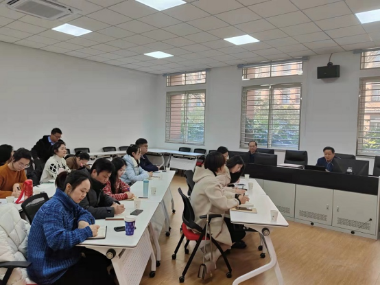 会上,薛浩带领大家学习了党的十九届六中全会精神,并一一介绍了习近平总书记关于思政课和师德师风的重要论述及上级部门的相关政策。他强调,思政课是落实立德树人根本任务的关键课程,办好思政课的关键在于教师。因此,思政课教师要坚守立德树人根本任务,加强大学生思想政治教育工作,努力促进学生健康成长,履行为党育人、为国育才的神圣职责。针对“如何提高思政课教师专业水平”这个问题,薛浩提出了几点建议:一是要学习相关政策文件,提高认识;二是要搞好教学,结合教学设计探索行之有效的教学方法;三是要强化科研,以科研促进教学;四是规范言行,严明政治纪律、政治底线。