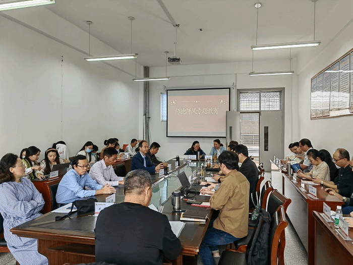 副院长赵迎华首选带领全院教职工进一步学习了教育部《新时代高校教师职业行为十项准则》《教育部关于高校教师师德师风行为处理的指导意见》《关于加强和改进新时代师德师风建设的意见》和《违反教师职业行为十项准则典型案例》,学习了人民日报文章《新时代加强师德师风建设的着力点》。其次,解读了相关制度文件精神和近年来教育部和其他高校通报的违反师德师风的典型案例,以强化教师对师德师风、网络安全和意识形态的认识和理解。