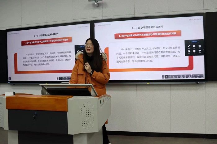 活动伊始,蔡云晨老师以“正确看待三年伟大抗疫斗争的历史性成就及其伟大贡献”主题,从“为什么说防控疫情是全人类共同面临的难题”“中国三年抗疫取得哪些伟大成就”以及“如何全面理解中国疫情防控策略的重大调整”三部分,展开了一堂过程完整、内容充实的《形势与政策》公开课。随后,杨广承和束东新两位老师,分别选取了《毛泽东思想和中国特色社会主义理论体系概论》课程第六专题中“邓小平理论形成的条件”,以及《中国近现代史纲要》课程第五专题中“中国共产党对革命新道路的探索”进行了教学展示。