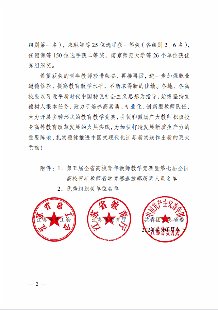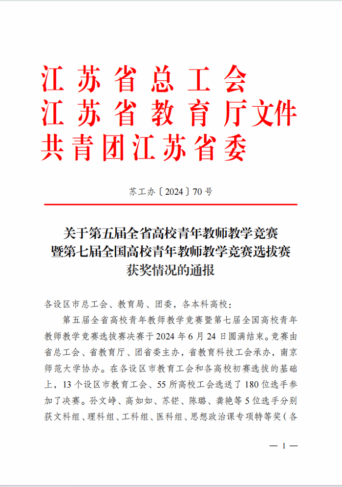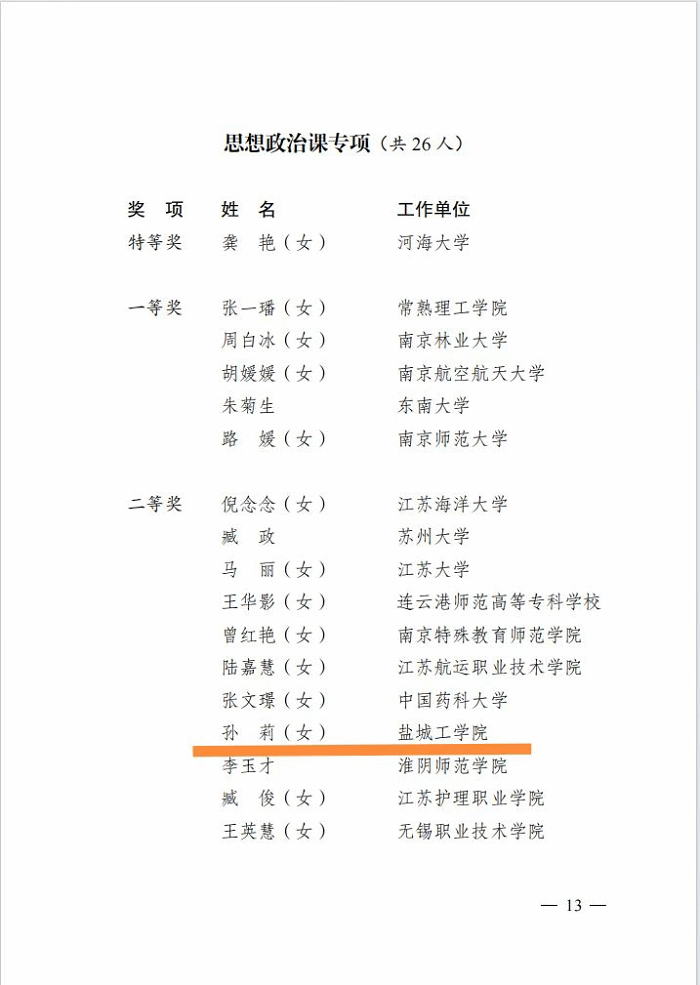 近日,由省总工会、省教育厅、团省委联合主办、省教育科技工会承办的第五届全省高校青年教师教学竞赛暨第七届全国高校青年教师教学竞赛选拔赛公布获奖结果,马克思主义学院孙莉老师在思政课专项组别中荣获二等奖。