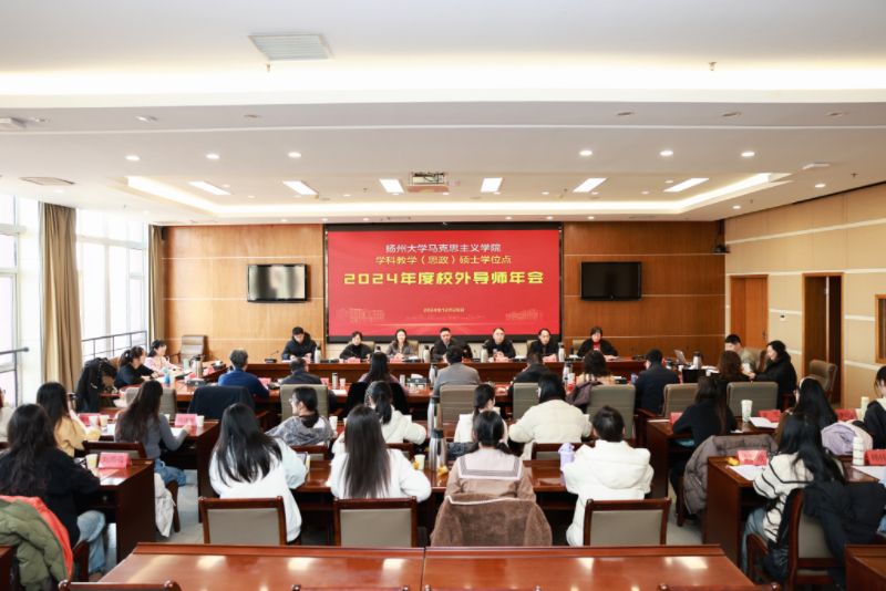 2024年12月28日,由我校马克思主义学院、社科处承办的扬州大学马克思主义学院学科教学(思政)硕士学位点2024年度校外导师年会,在希望大道校区行政楼九楼视频会议室举行,校党委副书记薛浩出席会议并致辞,马克思主义学院党总支书记、常务副院长胡凌霞主持年会开幕式,扬州大学马克思主义副院长张锋主持研讨报告环节。