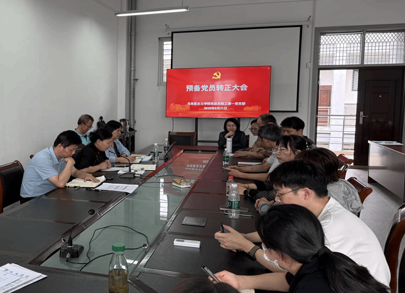2025 年 6 月 11 日下午,马克思主义学院教工第一党支部在博学楼A514召开全体党员大会,讨论关于吕宾同志的预备党员转正事宜。会议由党支部书记武素云主持,学院党总支书记、常务副院长胡凌霞、教工第一党支部党员参加大会。