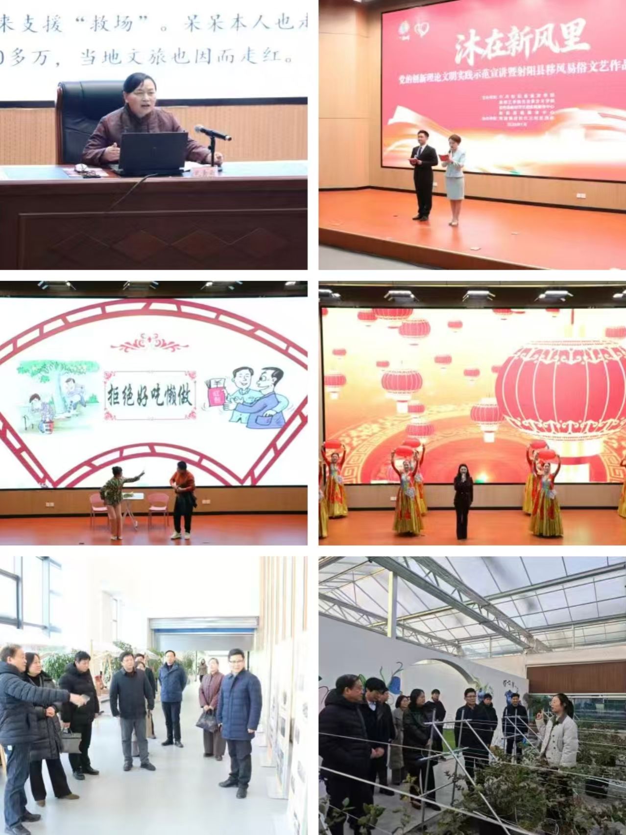 2026年1月23日,由中共射阳县委宣传部、盐城工学院马克思主义学院、射阳县新时代文明实践服务中心、射阳县融媒体中心联合主办的“沐在新风里”党的创新理论文明实践示范宣讲暨射阳县移风易俗文艺作品展演活动首场在射阳县海通镇成功举办。射阳县委宣传部常务副部长、县文明办主任周立耕,射阳县新时代文明实践服务中心主任田丽,射阳县融媒体中心党委书记、主任刘友华,射阳县委宣传部副部长夏正军,射阳县新时代文明实践服务中心副主任丁正清,射阳县海通镇党委副书记、镇长杨玉轩,盐城工学院马克思主义学院党总支书记、常务副院长胡凌霞,副院长马荣等出席活动。射阳县各镇区宣传委员(分管负责人)、宣传干事、海通镇群众代表近100人参加此次活动。