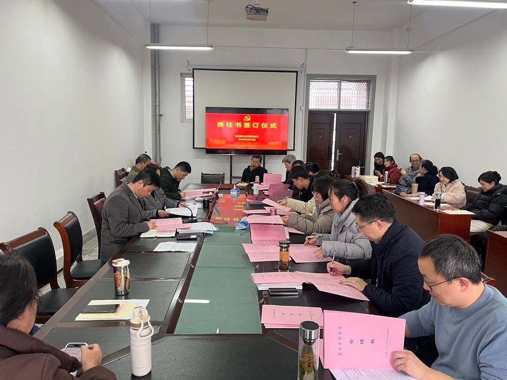 马荣解读了学院“清风铸魂·廉润马院”廉洁文化品牌建设三年行动方案并部署相关工作。会上,学院领导班子分别与党总支委员会成员、各科室负责人、教研部主任签订了《党风廉政建设责任书》,全体参会人员还一起观看了警示教育片。