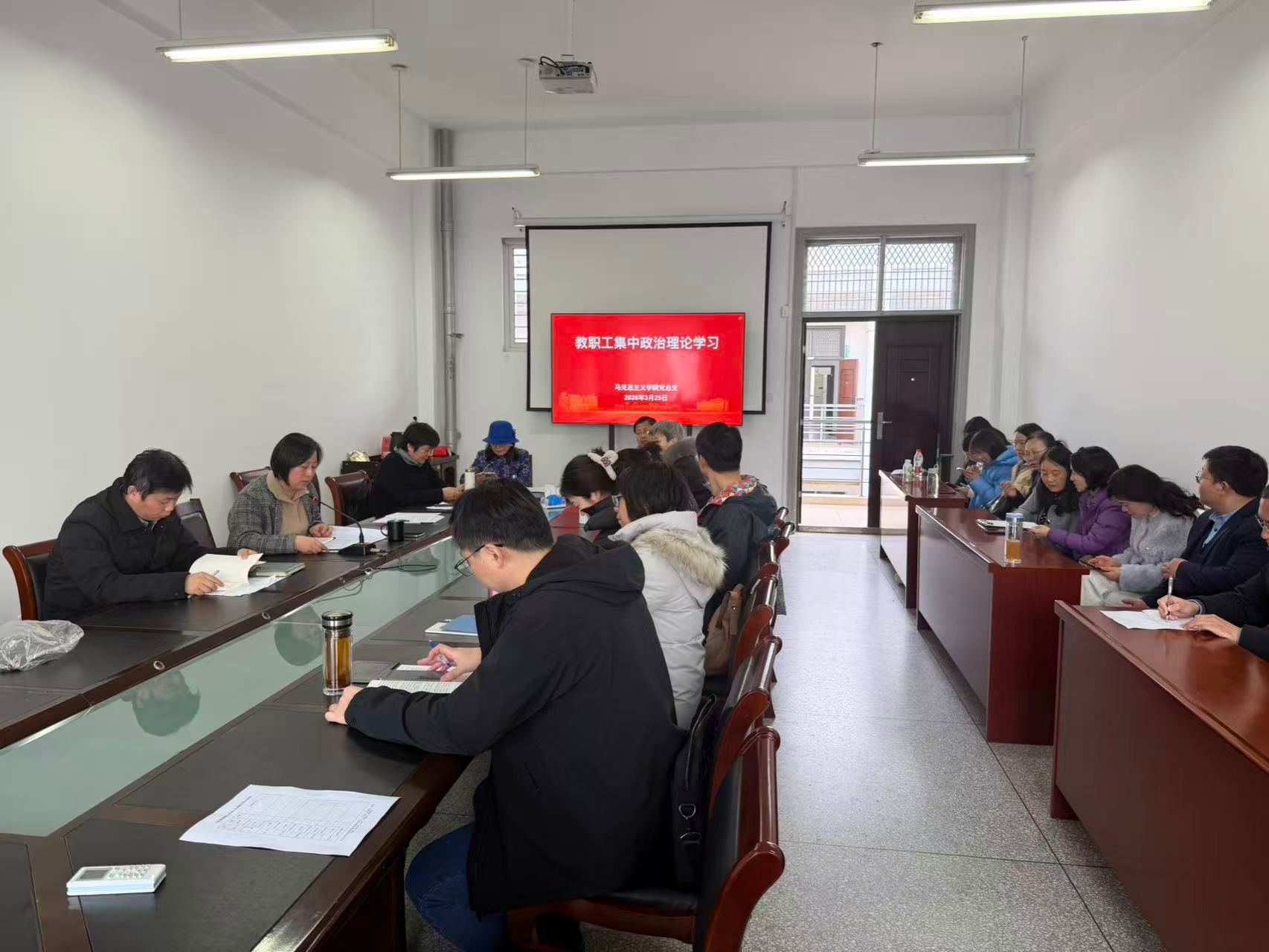 3月25日下午,马克思主义学院在博学楼A514召开全体教职工会议,开展集中政治理论学习。学院党总支书记、常务副院长胡凌霞主持会议,学院全体教职工参加学习。